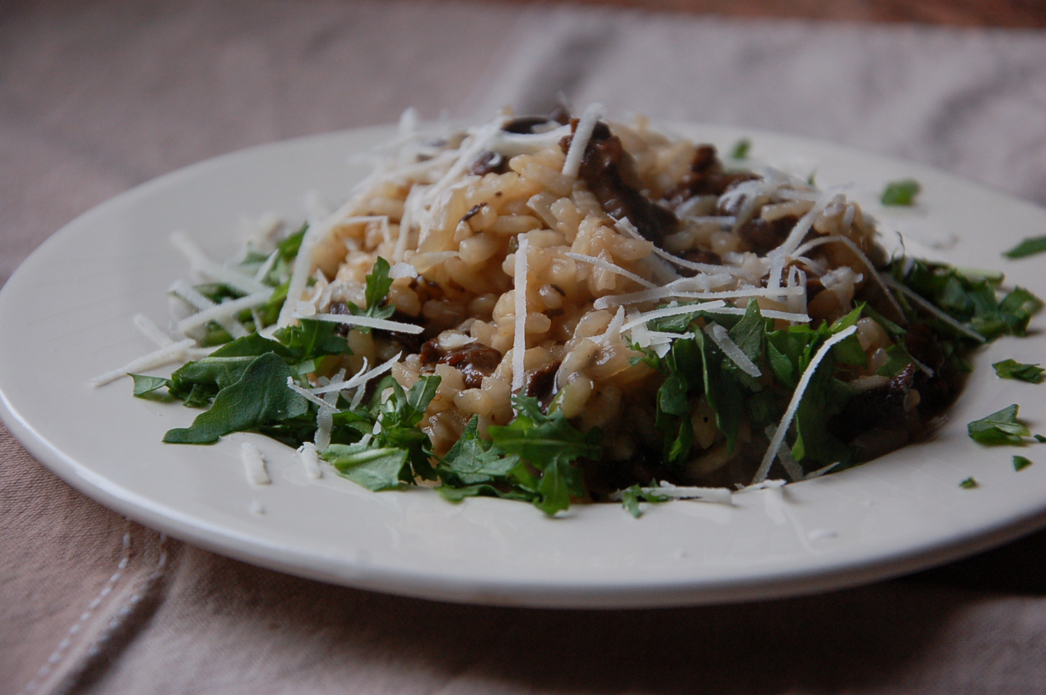 Risotto podawać posypane tartym parmezanem i rucolą lub natką.
